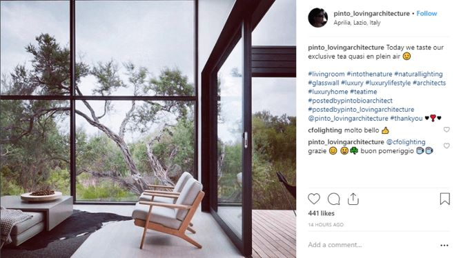 در صورت امکان نور طبیعی را انتخاب کنید. صبح زود و ساعت های پایانی بعد از ظهر بهترین زمان برای عکاسی در فضای باز است. نور طبیعی در این ساعات روز جلوه زیبایی به عکس شما می دهد. لوسیانا پینتو، یک معمار رمی، از نور طبیعی برای عکاسی استفاده می کند. در تصویر زیر معمار از نور طبیعی برای زیباتر نشان دادن اتاق نشیمن استفاده کرده است.