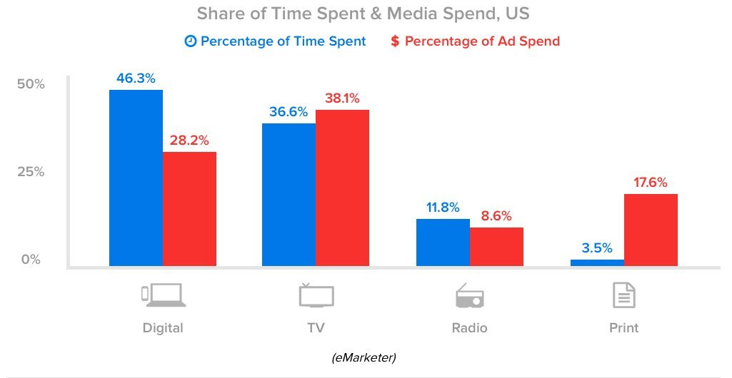 اما در بخش تبلیغات نیز به نظر می رسد درآمد و بازگشت سرمایه در رسانه های دیجیتال در حال رشد است اما همچنان تبلیغات تلویزیونی موفق تر از تبلیغات دیجیتال بوده است. روند تبلیغات دیجیتال و تبلیغات تلویزیونی نشان می دهد که تبلیغات دیجیتال یک رشد سریع و تبلیغات تلویزیونی یک افت آهسته را به خود دیده است و پیش بینی می شود در سال 2017 بازگشت سرمایه از تبلیغات در رسانه های دیجیتال بیشتر از تلویزیون باشد.
