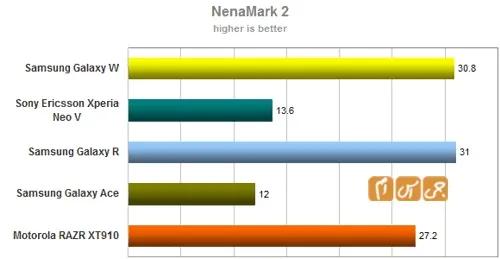 سونی اریکسون Neo V دارای رزولوشن بیشتری نسبت به رقیب سامسونگی خود می باشد .( چیزی در حدود 7% رزولوشن بیشتر) اما بر خلاف این آمار ها در تست عملکرد 3 بعدی نتایج خوبی از این گوشی سونی اریکسونی بدست نیامد . سامسونگ Galaxy W به نرخ 30 فریم در ثانیه می رسد ، این در حالی است که سونی اریکسون Xperia Neo V به نرخ 15 فریم در ثانیه در بهترین شرایط خواهد رسید .