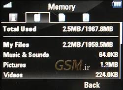 این گوشی دارای 26 مگابایت حافظه داخلی جهت ذخیره اطلاعات یا نصب