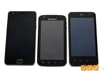Atrix 4G از رزولوشن 540 x 960 پیکسل استفاده می کند اما صفحه نمایش های Galaxy S II و Optimuis 2X هر دو از رزولوشن 480 x 800 پیکسل بهره می گیرند . میزان تراکم پیکسلی کمتر صفحه نمایش ، به قدرت پردازشی کمتری نیاز خواهد داشت و به همین دلیل کره ای ها باید در این قسمت عملکرد بهتری داشته باشند.