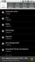 کلیدهای محازی play/pause و نوار پیشرونده از جمله نکات دیگر در رابط این قسمت از نرم افزار هستند. صفحه Now Playing در حالت افقی نیز نمایش داده می شود اما مشخصه خاصی به آن اضافه نمی شود.