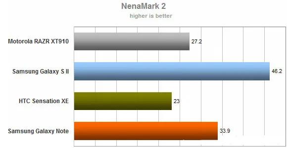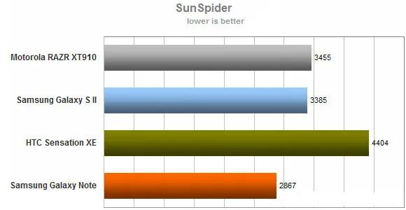در این قسمت RAZR با فاصله زیادی دوم شد، ولی در هر صورت جلوتر از سامسونگ بود. بنابراین موضوع فقط قدرت پردازش نیست و بهینه بودن نرم افزار نیز نقش مهمی را بازی میکند.