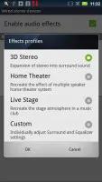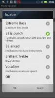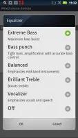برای هدفون، تنظیمات استریوی سه بعدی، سینمای خانگی، اجرای زنده، و یا تنظیمات شخصی که خود حاوی چیزهای بیشتری مثل Extreme Bass، Bass punch، Balanced، Brilliant Treble، و Vocalizer در اختیار شما قرار میگیرند، ولی نمیتوانید تنظیمات واقعا شخصی برای صدا تعریف کنید. در صورت تمایل، میتوانید اکویلایزر را خاموش نیز بکنید. برای پخش موزیک از بلندگو، فقط میتوانید از تنظیمات Custom برای اکویلایزر استفاده کنید.
