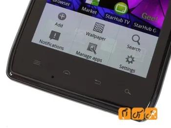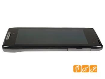 در بالای صفحه نمایش، حسگر نور محیط و مجاورت سنج و دوربین ثانویه 3/1 مگا پیکسلی قرار گرفتهاند. یک چراغ هشدار سبز، شما را از رخدادهای جدید با خبر میکند. بلند گوی گوشی (earpiece) نیز آنجا قرار گرفته، در زیر لوگوی موتورولا که به صورت ظریفی بر روی یک صفحه فلزی که کنتراست زیبایی با زمینه سیاه آن به وجود می آورد، هک شده. در زیر صفحه نمایش، چهار کلید خازنی Menu، Home، Back، Search، و سوراخ میکروفون قرار گرفته.