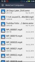 موتورولا یک برنامه اضافی را نیز روی این مدل نصب کرده است: MotoCast. با این برنامه میتوانید از طریق اینترنت به فایلهای ذخیره شده روی کامپیوتر خود (میتوانید فولدر های مشخصی را انتخاب کنید) دسترسی پیدا کنید. این یعنی در هر جایی میتوانید دادهها را منتقل کنید و فایلها را از کامپیوتر به گوشی خود انتقال دهید. همیشه میتوانید از طریق هر مرورگر وبی، با تایپ کردن آدرس MyMotoCast.com به فایل هایتان دسترسی پیدا کنید. برای آنهایی که راحت فراموش میکنند، این برنامه خیلی خوبی است.
