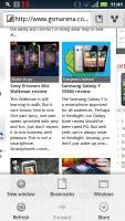 مرورگر وب قدرتمند با پشتیبانی از فلش محیط این مرورگر بسیار ساده است. روی صفحه به جز صفحه وب، آدرس بار و آیکن های بوکمارک و share را میبینید. ولی با اسکرول کردن، همینها هم ناپدید میشوند و همه صفحه 3/4 اینچی برای صفحه وب باقی میماند (البته قسمت اخطار ها هنوز دیده میشود). با لمس کلید منو، شش دکمه مجازی ظاهر میشوند. میتوانید یک سربرگ جدید باز کنید، بوکمارک ها را ببینید، بین تبها حرکت کنید، صفحه را refresh کنید، و به جلو (forward) بروید. آخرین دکمه گزینههای بیشتری را در اختیرتان قرار میدهد (کپی متن، جستجو در صفحه، و غیره).