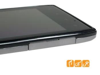 پهلوی چپ این گوشی خیلی ساده است و فقط شیارهای سیمکارت و کارت حافظه را زیر یک درب پلاستیکی در خود جای داده. باز کردن این درب بیش از حد سخت است و ما نگران بودیم که آن را بیش از حد بکشیم و به آن صدمه بزنیم. وارد و خارج کردن کارت حافظه واقعا راحت است، در حالی که پس از ورود سیمکارت به گوشی، خارج کردن آن تقریباً غیر ممکن است. یا زبانهای که باید فشار داده شود برای آن طراحی نشده و یا نمونه ای که به دست ما رسید مشکل داشته.