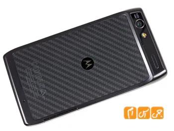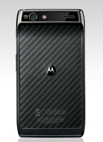 به جای طرح تکرری مستطیل با گوشههای گرد شده، در RAZR از گوشههای پخ دار استفاده شده و شیشه گوریلا ی روی آن تقریباً شش ضلعی است Kelvar پشت این گوشی نیز هلتخسی دارد و ظاهری شبیه بدنههای ساخته شده از فیبرهای کربنی را به وجود میاورد (این نوع سطح معمولا در گوشیهای لوکس دیده میشود).