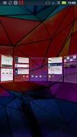 صفحه خانگی (Homescreen) حاوی پنج پنجره است که به صورت افقی جابجا میشوند. حرکت بین آنها همراه با یک انیمیشن و سایههایی انجام میشود که نوعی عمق را به وجود می آورند. لمس کلید Home شما را به گزینه وسطی میبرد و با لمس دو باره آن، به حالت پیش نمایش (preview mode) میروید که در آن میتوانید سریعا به هر یک از صفحه های خانگی که میخواهید بروید. ولی در اینجا نمی توانید گزینههای صفحه خانگی خود را حذف کنید، چیزی به آنها اضافه نمید، یا با حرکت زوم با دو انگشت به حالت پیش نمایش بروید (برای این کار همیشه باید از کلید Home استفاده کنید). در حالت پیش نمایش، نمیتوانید ترتیب این پنجرهها را تغییر دهید.