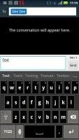 قسمت SMS و MMS (که Text Messaging نام گرفته) سبک استاندرد اندروید را دارد. میتوان پیامها را به صورت نواری مشاهده کرد و قسمت نوشتن پیام داری محیطی ساده و خلوت است. پنجره محل نوشتن متن، ابتدا فقط دو خط دارد، ولی با طولانی شدن متن بزرگتر میشود. در صورت لزوم، این پنجره میتواند همه صفحه را بپوشاند که در مورد متنهای طولانی خیلی خوب است. در این قسمت یک سیستم شمارش کاراکتر ها و شمارش قسمتهای پیام نیز وجود دارد. اگربا انگشت خود برای چند لحظه منطقه tap-to-compose را لمس کنید، گزینههایی مثل copy، cut، و paste ظاهر میشوند. میتوانید متن کپی شده را در قسمتهای مختلفی مثل ایمیل، یادداشت، چت، و غیره paste کنید. تبدیل کردن SMS به MMS واقعا راحت است. برای این کار میتوانید یک فایل صدا یا عکس را به SMS خود اضافه کنید و یا از ویرایشگر MMS استفده نمایید.