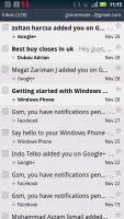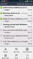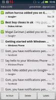 در برنامه پیامها، تویتر و فیسبوک نیز داری قسمت مخصوص خود هستند. در اینجا، فقط پیامهایی که برایتان ارسال شده را میبینید و از آپدیتstatus دوستانتان خبری نیست. ایمیل با صندوق دریافت مرکب اگر میخواهید از ایمیل استفاده کنید، برنامه جیمیل و یک برنامه کلی ایمیل در اختیارتان هستند. در برنامه جیمیل، میتوانید چندین ایمیل را انتخاب کنید و عملیات آرشیو کردن، لیبل زدن، و یا پاک کردن را همزمان روی آنها انجام دهید. میتوانید ایمیل را طوری تنظیم کنید که به طور خودکار آپدیت شود. گزینهای وجود دارد که با فعال شدن آن برنامه ایمیل فقط از Wi-Fi استفاده میکندکه این باعث میشود هزینه تبادل دیتای شما کاهش یابد.