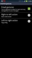 برنامه پیام رسانی از فرمانهای تک حرکتی حمایت میکند. میتوانید فرمان های خاصی را تعریف کنیدکه با کشیدن انگشتتان از چپ به راست و یا از راست به چپ انجام شوند. فرمان های موجود عبارتند از read/unread، flag/unflag، move، و یا delete . میتوانید کاری کنید که فقط ایمیلهای خوانده نشده یا ایمیلهای پرچم دار شده نشان داده شوند. حالتهای دیگر نمایش، نمایش ایمیلهای پیوست دار و نمایش ایمیلها به ترتیب اهمیت میباشند.