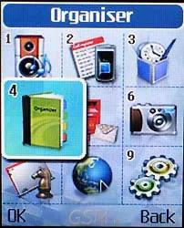 در این قسمت می توانید 20 رویداد به همراه ساعت و تاریخ شان به منظور یادآوری (زنگ زدن) به صورت روزانه ، هفتگی ، ماهانه و سالانه ذخیره نمایید . تقویم گوشی روزهای یک ماه را به طور کامل در صفحه ، نمایش می دهد و روزهایی که رویداد خاصی برای آن ها تعریف شده است ، با یک رنگ دیگر از بقیه روزها متمایز می شوند و علامت نوع آن ها (قرار ملاقات و با یادآوری کننده) نیز در کنارشان نمایش داده می شوند . تنها ضعف این بخش محدودیت ذخیره رویداد است که فقط 20 مورد می باشد .