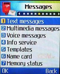 توانایی پشتیبانی از استاندارد EMS در این گوشی نیز وجود دارد ؛ به این معنی که قادر به دریافت و ارسال ملودی های ساده و عکس های سیاه و سفید (Picture Message) از طریق SMS می باشید و همین طور می توانید چند SMS طولانی را در قالب یک SMS طولانی دریافت و ارسال نمایید . همچنین قابلیت استفاده از سیستم تایپ هوشمند (T9) نیز در این گوشی موجود است و نیز قادر به ارسال و دریافت پیام های چند رسانه ای یا MMS نیز می باشید .
