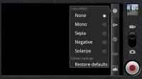 گزینه های موجود عمدتا به نوع فوکوس ، نوردهی ، حالت صحنه ، جلوه های رنگی و اندازه عکس ختم می شوند. برای مثال ISO از جمله گزینه های در دسترس کاربر برای ویراستن قرار ندارد.
