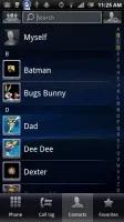 در بالای رابط یک کادر جستجو برای یافتن سریع تر مخاطبی خاص تعبیه شده است . یک پیمایشگر الفبایی نیز برای مرور سریع تر مخاطبین با استفاده از حرف نخست نام شان و میانبرهایی به شماره گیر ، گزارش تماس ها و لیست علاقمندی ها از دیگر مواردی هستند که در این بخش به چشم می خورند.