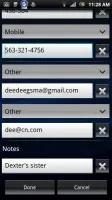 به هر مخاطب می توان فیلدهای اطلاعاتی متنوعی نسبت داد و هر کدام از آن ها را هر چندبار که لازم دارید ، تکرار نمایید . کلیدهای مثبت و منفی هم چنان در کنار فیلدها تعبیه شده اند و اجازه حذف و اضافه آن ها را به شما می دهند. فیلدها همه چیز از نام ها گرفته (به همراه فیلدی مجزا برای تعبیه فونوتیک نام) تا آدرسها، نام های مستعار و یادداشت ها را پوشش می دهند.