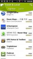 ساختار Android Market بسیار ساده است ، نرم افزارهای برجسته در بالا قرار دارند و در زیر آن ها سه بخش Application ، Games و Downloads است.میانبری هم برای آغاز جستجو در این قسمت دیده می شود.