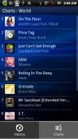 موزیک پلیر Xperia Pro مشابه برنامههای موجود روی Xperia ray و Xperia arc S است. The interface is laid out in four tabs for the available sorting options:, , and.. محیط این برنامه داری چهار سربرگ برای حالتهای مختلف دسته بندی است: all artists، all tracks، playlists، و albums. با فشار دادن دکمه منو، میانبر گزینههای search، send، و delete ظاهر میشوند.