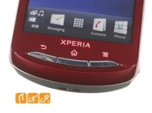 در زیر صفحه نمایش، کلیدهای معمول کنترل قرار گرفتهاند. دکمههای سخت افزاری Back، Home، و Menu کمی چسبیده به هم به نظر میرسند، ولی در مقایسه با Xperia arc، راحتتر هستند.