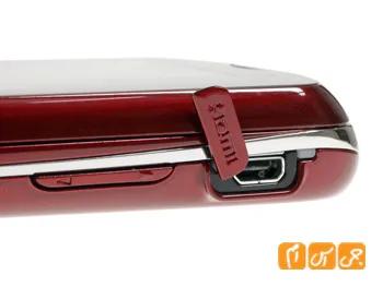 در مرکز لبه بالای گوشی، درگاه microUSBقرار گرفته است. در لبه پایین گوشی، تنها چیزی که دیده میشود محل وصل کردن بند است.