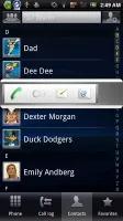 میتوان فهرست مخاطبان را بر حسب اسم بزرگ یا کوچک مرتب کرد. برای جستجو در میان مخاطبین دو حالت وجود دارد. یک نوار جستجو که در بالای لیست مخاطبها قرار گرفته و نیز قابلیت جدا کردن اسمهایی که با یک حرف مشخص شروع میشوند. میتوانید اطلاعات خود را با چندین حساب مختلف از جمله Exchange و فیسبوک هماهنگ کنید، بعضی از مخاطبین هر حساب خود را به صورت انتخابی پنهان کنید، و یا دفترچه تلفن را به صورتی تنظیم کنیدکه مخاطبین را فقط با شماره تلفن آنها نشان دهد. در صورتی که مخاطبی در چند سرویس مختلف دارای حساب کاربری باشد، میتوانید اطلاعات مربوط به او را در یک جا جمع کنید. در فیسبوک، قسمتهای عکس و interest در سربرگهای جدا گانه ای نمایش داده میشوند. عملیات سریع بر روی مخاطبها نیز امکان پذیر است. با لمس تصویر هر مخاطب، میانبرهایی برای تماس و یا فرستادن SMS و یا ایمیل به او ظاهر میشوند. اطلاعات هر مخاطب را میتوان تحت چندین فیلد طبقه بندی کردو با اسفاده از دکمههای مثبت و x میتوان فیلدها را اضافه یا حذف نمود. فیلدها میتوانند هر گونه اطلاعاتی را در بر گیرند، از اسم ( و حتی تلفظ اسم) گرفته تا آدرس، لقب، و یادداشت. میتوان کاری کرد که تماسها مستقیما به پیغام گیرصوتی وصل شوند. اختصاص دادن زنگهای متفاوت به مخاطبها نیز ممکن است. میتوانید با "ستاره دار" کردن یک مخاطب اورا به سربرگ علاقه مندی های خود اضافه کنید. همچنین، در هر حساب Gmail یک گروه به نام "ستاره دارهای اندروید (starred in android) " وجود دارند که مخاطبهای ستاره دار شده مستقیما به آنجا خواهند رفت.