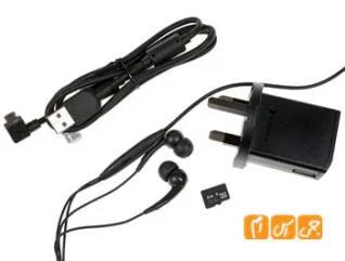 داخل جعبه این گوشی، هیچ سورپریزی وجود ندارد. یک شارژر USB، یک کابل microUSB-to-USB (برای شارژ کردن و اتصال به کامپیوتر)، و یک هد ست in-ear.
