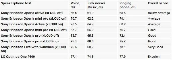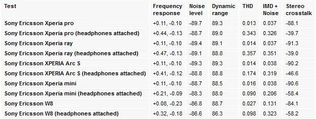 Xperia Pro سونی اریکسون در تست خروجی صدا بسیار قوی ظاهر شد. در زمینههای مختلف امتیازهای خوبی به دست آورد و بلندی صدای آن قابل قبول است، برای همین بیشتر کاربران از آن راضی خواهند بود. مثل همیشه، مهمترین امتیازها با وصل کردن خروجی صدای اسمارت فون به یک آمپلیفایر خارجی به دست می آیند. در این تست، Xperia Pro سونی اریکسون همه موارد مورد بررسی را با موفقیت پشت سر گذاشت. متاسفانه، وقتی یک هدفون استریو را به Xperia Pro وصل میکنید، تداخل استریو بیش از چیزی است که بتوان آن را خوب در نظر گرفت، همچنین مقداری دیستورشن قابل تشخیص است و فرکانس کمی نوسان دارد. سطح نویز و محدوده دینامیک ثابت میمانند، ولی درکل عملکرد این گوشی در قسمت دوم تست متوسط بود. در این جدول خودتان میتوانید نتایج را ببینید.