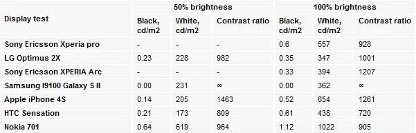 با اینکه صفحه نمایش Reality برای SuperAMOLED سامسونگ گزینه مناسبی نبوده، از بهترین LCD ها به شمار میرود و ما بار ها اسمارت فون های جدید سونی اریکسون را به خاطر کیفیت تصویر و عملکرد در نور روز تحسین کرده ایم.و حالا تست صحفحه نمایش ما. در Xperia Pro، تستهای صفحه نمایش را فقط در بیشترین حد روشنایی آن انجام دادیم، زیرا در حالتهای دیگر، حسگر نور وارد عمل میشود و به طور خودکار روشنایی صفحه نمایش را کنترل میکند. و از آنجا که تست های صفحه نمایش در اتاق کاملا تاریک انجام میشوند، این موضوع باعث به وجود آمدن خطا در نتایج میشد.