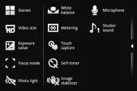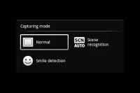 در این محیط با فشردن دکممه ی Menu می توانید به تنظیمات بیشتر مانند فوکوس اتوماتیک ، عکس برداری لمسی ، White Balance ، Geo tagging دست یابید . ناگفته نماند که دوربین Xperia Mini دارای قابلیت تشخصی لبخند و چهره می باشد .
