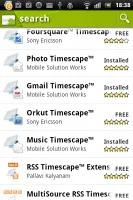 با Timescape علاوه بر دیدن آخرین فعالیتها و آپدیت های مخاطبها، میتوانید status خودتان را هم به اشتراک بگذارید، به پیامهای دریافت شده پاسخ دهید، یا با کسی که موفق به پاسخ دادن به تماسش نشده اید، تماس بگیرید.میتوانید Timescape را به عنوان یک آیتم صفحه خانگی قرار دهید. در Android Market برای کاربران سونی اریکسون افزونه های رایگان Timescape وجود دارد. در حل حاضر، میتوانید Timescape خود را با فید های موزیک و عکس، و یا با Mixi، Foursquare، Orkut، و Gmail آپدیت کنید.