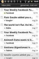 در رابطه با ایمیل، برنامه جیمیل از عملیات گروهی پشتیبانی میکند، که با آن میتوان چندین ایمیل را با هم آرشیو، برچسب دار، و یا حذف کرد. این برنامه میتواند از چندین حساب جیمیل پشتیبانی کند، ولی توانایی یکی کردن صندوق دریافت آنها را ندارد.