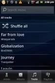 موزیک پلیر Xperia active ظاهر خیلی خوبی دارد. در این محیط، 4 تب برای انتخاب نوع دسته بندی وجود دارد که عبارتند از all artists، all tracks، playlists و albums. با این که این محصول از خانواده Xperia است، موزیک پلیر آن کاملا شبیه محصولات Walkman است.با لمس دکمه منو، گزینههای send و delete ظاهر میشوند. همچنین، یک نوار جستجو در بالای صفحه وجود دارد.