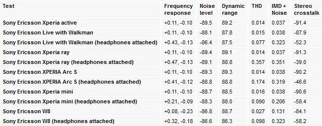 نتیجه تست خروجی صدار روی Xperia active سونی اریکسون بسیار خوب بود. البته قسمت اول آن. زیرا طراحی خاص محل فیش 5/3 میلیمتری به ما اجازه وصل کردن کابل تبدیل دو شاخه که برای قسمت دوم تست لازم بود را نداد. در هر صورت، میتوان مطمئن بود که پردازش بیتهای صوتی در Xperia active نیز مانند پسر عموی آن Live with Walkman است و میتوان عملکرد این دو دستگاه در شرایط سخت را مانند هم در نظر گرفت.نتیجه وصل کردن Xperia active به یک آمپلی فایر خارجی، صدایی بسیار عالی بود. واکنش بسامدی آن کاملا دقیق بود، دیستُرشن ها کاملا تحت کنترل بودند و اثری از سیگنالهای اضافی (crosstalk) دیده نشد. بنابراین در این قسمت مشکلی وجود ندارد.و با دیدن این نتایج، خودتان میتوانید قضاوت کنید.