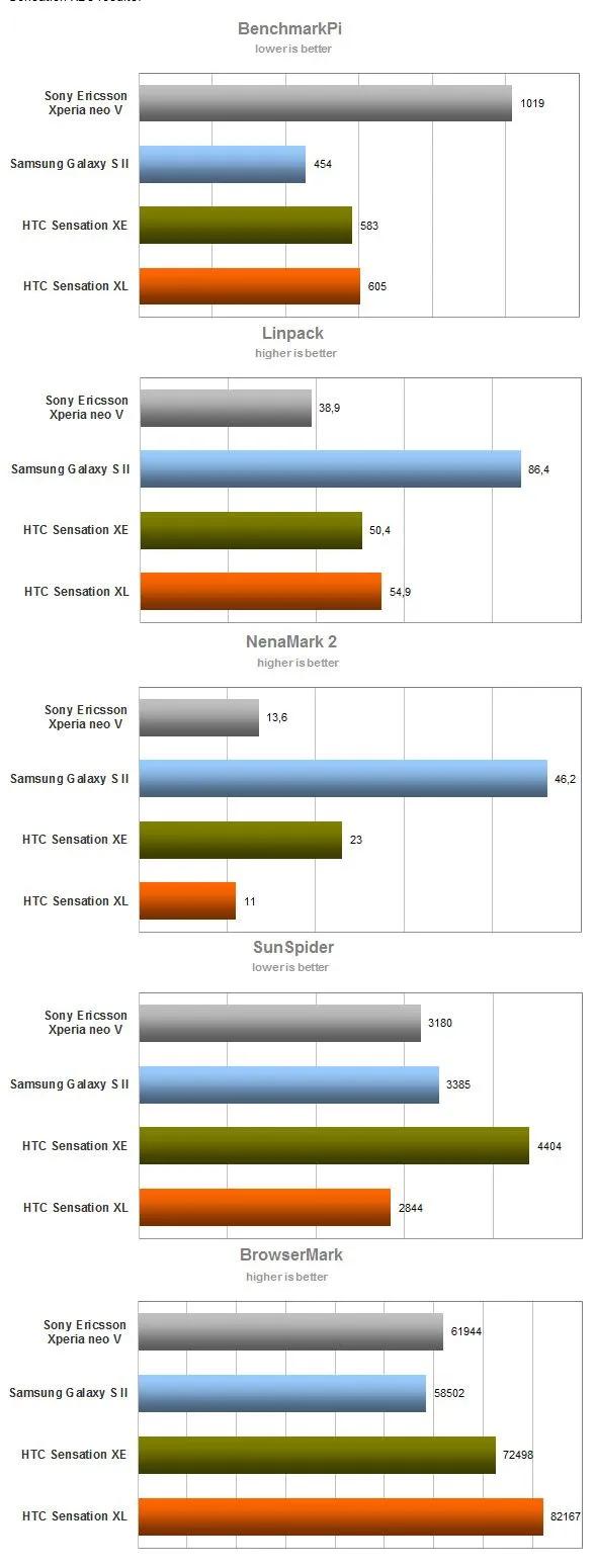 سونی اریکسون از این تراشه در اکثر اسمارت فون های خود استفاده کرده و همانطور که ما انتظار داشتیم نتایج مربوط به Neo V بسیار به Xperia ray نزدیک بوده ولی در سطح پایینتری نسبت به HTC Sensation XL قرار میگیرد.