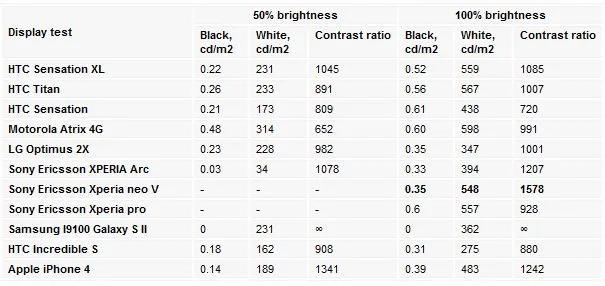 در آزمون اختصاصی صفحه نمایش، ما فقط توانستیم میزان روشنایی صفحه را تا حداکثر بالا ببریم و وقتی با بقیه ی تنظیمات این کار را انجام میدادیم سنسور نور، خود کنترل روشنایی صفحه را بدست میگرفت و بعد از این مشکل ما آزمون خود را در یک اتاق کاملا تاریک ادامه دادیم و نتایج را میتوانید در تصویر زیر مشاهده کنید.