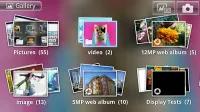 آلبوم ها و پوشه ها به شکل توده ای از تصاویر بصورت شبکه شبکه نمایش داده میشوند، اگر شما به آلبوم های آنلاین نظیر Picasa دسترسی دارید انها نیز در ستون جداگانه ای نشان داده میشوند.