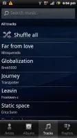 پخش کننده ی موسیقی در Neo V دقیقا همان چیزی است که در arc S،ray و Xperia Neo مشاهده کرده بودیم. رابط این بخش شامل چهار برگه ی "تمام هنرمندان"، "تمام قطعه ها"، "لیست ها" و "آلبوم ها" میشود که برای دسته بندی مجموعه ی شما استفاده میشوند.