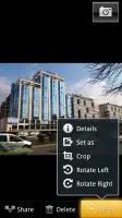 امکان سازمان دهی عکس ها به توجه به تاریخ به کمک کلیدی که در گوشه بالای سمت راست جای گرفته است و اجازه سوییچ میان نمای مشبک و timeline را به شما می دهد ، نیز وجود دارد.در نمای مشبک ، لغزنده خاصی برای تاریخ در نظر گرفته شده است که می تواند برای یافتن عکس های ثبت شده در تاریخی خاص ، مفید باشد.گالری از پیمایش عکس ها و Panning توسط انگشت پشتیبانی می کند و بنابراین بدون بازگشت به نمای پیش فرض به عکس بعد یا قبل حرکت کنید. برای این کار کافی است تا در حالت تمام صفحه ، انگشت تان را به سمت راست یا چپ بر روی عکس بکشید و عکس بعدی یا قبلی در برابر شما نمایان گردد.به لطف پشتیبانی Xperia arc s از Pinch Zooming ، می توانید از این قابلیت نیز برای بزرگنمایی بر روی عکس ها استفاده کنید . انجام این کار با استفاده از ضربات دوگانه و یک کلیدهای +/- نیز وجود دارد. متاسفانه بزرگنمایی در حدی نیست که جزئیات را به خوبی به نمایش در آورد.گالری آندروید تنها نسخه ای کوچک از عکس های شما را به نمایش می گذارد ، اما اگر یکی از آن ها را برای دیگری ارسال نمایید ، عکس با رزولوشن اصلی و کامل به دست وی خواهد رسید. در گالری به صورت مستقیم می توانید به چرخاندن یا برش زدن تصاویر بپردازید. امکان به اشتراک گذاری سریع تصاویر با Picasa ، نرم افزارهای Email ، بلوتوث و ایمیل نیز وجود دارد.