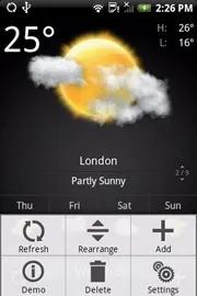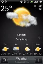 پیش­بینی وضعیت آب و هوا هم ویجت اختصاصی خود را دارد. اینترفیس