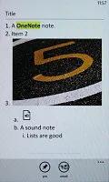 OneNote نرم افزاری اختصاصی مایکروسافت برای یادداشت برداری است. این بخش پشتیبانی فوق العاده ای از لیست ها دارد ، امکان افزودن عکس و یادداشت های صوتی را برای شما فراهم می آورد و علاوه بر این امکان ارسال یادداشت ها از طریق ایمیل هم یکی دیگر از قابلیت های آن است. این بخش قابلیت همگام سازی با حساب های کاربری SkyDrive و Windows Live را دارد و بنابراین می توانید از هر جایی به آن ها دسترسی داشته باشید. امکان الصاق به صفحه اصلی در این قسمت و برای یادداشت ها هم تعبیه شده است.