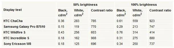 در تست های صفخه نمایش که بر روی این گوشی و دیگر گوشی ها انجام دادیم ، صفحه نمایش ChaCha از لحاظ رتبه بسیار نزدیک به بهترین LCDs های بازار هم ردیف خود است . به جدول زیر توجه کنید :