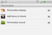 با فشردن دکمه ی Personalize وارد این بخش می شوید که می توانید در بخش Display ، صحنه ها و پس زمینه ها را تغییر دهید و در بخش Item To Home می توانید ویجت ها ، میانبر ها و پوشه ها را ساماندهی کرده و در نهایت در بخش صداها می توانید زنگ ها ، Alarm ها و هشدار دهنده ها را نتخاب نمایید .