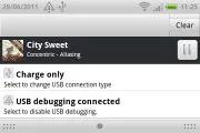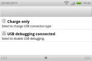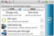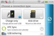 با اتصال کابل MicroUSB به گوشی ، لیست طویلی از گزینه ها در اختیار شما قرار داده می شود . گزینه های ساده ای چون Charge Only (فقط شارژ کردن گوشی) ، Disk Drive ( اتصال حافظه ی خارجی به عنوان یک درایو ذخیره ساز ) و HTC Sync ( برای همگام سازی گوشی با HTC pc Suite ) و USB Tethering ( برای تبدیل گوشی به یک مودم و استفاده از آن ) در لیست دیده می شود .