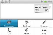 کادر ارسال پیام در حالت افقی قرار دارد که نیمی از صفحه نمایش را اشغال می کند و بسیار بزرگ و کار آمد است و برای افزودن گیرندگان ، باید نام وی را تایپ نمایید یا از میان مخاطبین انتخاب نمایید . کادر درج متن بزرگ بوده و استفاده از صفحه کلید QWERTY بسیار راحت است . با فشردن و نگه داشتن کادر متنی به عملگر هایی چون Copy ، Paste و Cut دست پیدا می کنید . می توانید متن کپی شده را از هر نرم افزار که می خواهید مانند ایمیل ، یادداشت ها ، چت ها و … Paste نمایید . همچنین با فشردن صفحه و نگه داشتن انگشتتان ذره بینی نمایان می شود که امکان حرکت دقیق اشاره گر را مهیا می کند .