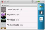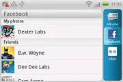 در این بخش و در قسمت سمت راست صفحه نمایش 3 کلید مجازی تعبیه شده است : یکی از آنها امکان دسترسی به پوشه های واقعی تصاویر را مهیا می کند ، یکی برای Facebook در نظر گرفته شده و دیگری نیز میانبری به Flickr است . این دو میانبر آخرین عکس های پست شده توسط هر حساب و یا ارسال توسط دوستان را نمایش می دهد .