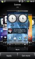 رابط کاربری HTC Sense از صحنه ها – شش تنظیم متفاوت صفحه اصلی – استفاده می کند . هر صحنه تصویر پس زمینه و ویجت های موجود در صفحه اصلی را تغییر می دهد . برای مثال صحنه Work از ویجت سهام استفاده می کند در حالیکه صحنه Social از ویجت Twitter بهره می گیرد.
