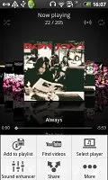 دو میانبر در گوشه های بالایی برای فعال و غیرفعال کردن پخش تصادفی آهنگ ها و تکرار آن ها به کار برده شده است. از طریق منو امکان به اشتراک گذاری آهنگ ها (بلوتوث ، ایمیل یا MMS) وجود دارد و علاوه بر آن می توانید به جستجوی موزیک ویدیوی آن آهنگ هم بپردازید.