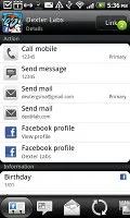 با انتخاب یک مخاطب اطلاعات اساسی آن چون نام ، عکس ، شماره ها ،ایمیل و مانند آن به نمایش در می آید. این اطلاعات تنها در لبه اول به نمایش در می آید و باقی لبه ها اطلاعات روش های ارتباطی دیگر چون ایمیل را نگاهداری می کنند و یا گزارشی از تماس ها را به نمایش در می آورند.
